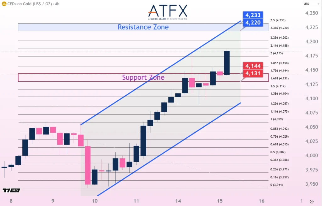 Gold surged to a new record at $4,179.47/oz, supported by Fed rate-cut expectations, rising trade tensions, and global de-dollarization flows. Technically, price is consolidating above the $4,144 demand zone, with momentum favoring another leg higher toward $4,220. A failure to hold above $4,144 could trigger a retest of $4,100 before bulls regain control.